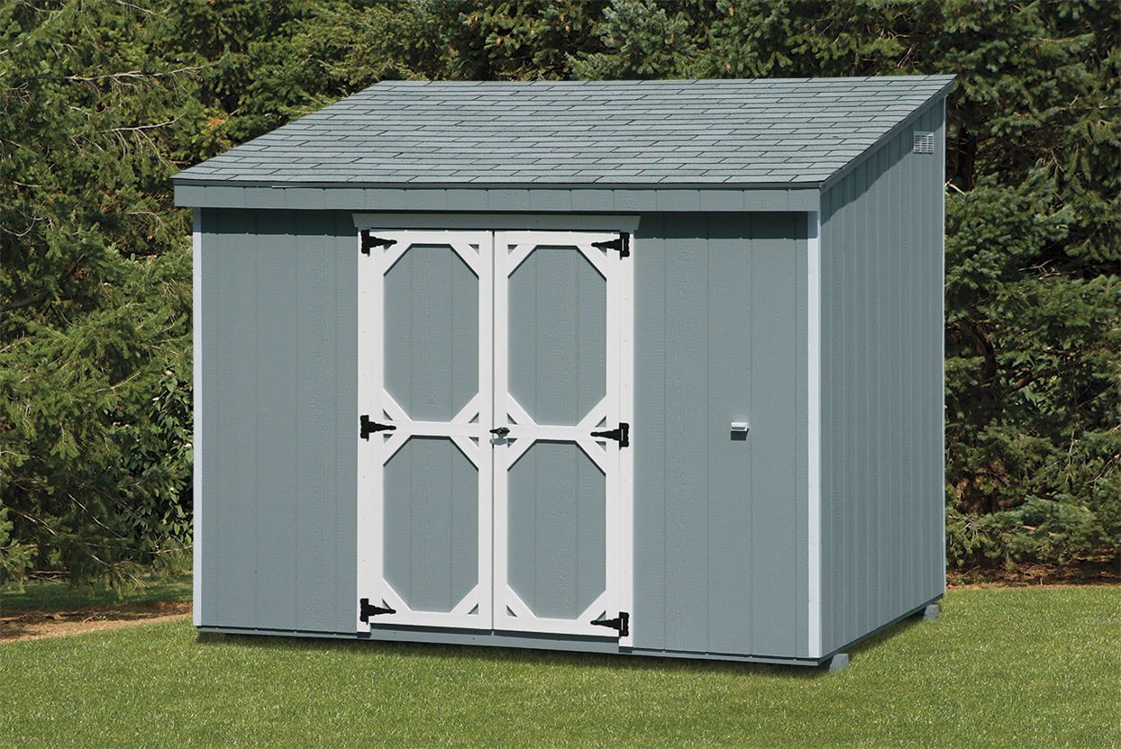 Perfect for small yards, our Lean-To shed saves space with its unique design. This shed features a sloped roof that allows it to be placed directly against another building, reducing the amount of space it takes up. The Lean-To is perfect for storing generators, lawn mowers, gardening tools, pool supplies, motorcycles, recreational equipment, and more. These sheds come standard with 1 set of double doors and 2 gable vents. You can further customize your building with our selection of colors, add-ons, and package upgrades. Maximize your storage space and save money with our Lean-To shed.